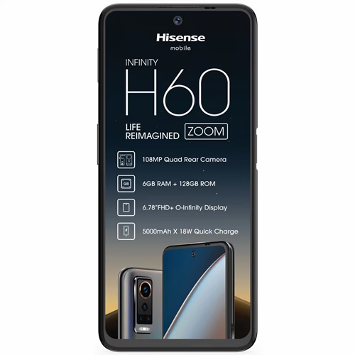 HISENSE MOBILE PHONE 4G, 6.8″, OCTA-CORE, 6GB+128GB, 108MP REAR+16MP FRONT, 5000MAH, ANDROID 11 (H60 ZOOM)