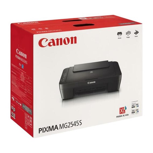 A4 MFP, Print, Copy and Scan. Specifications: Easy ink replacement, stay connected on Canon PRINT app, AirPrint (iOS) and Mopria (Android), PIXMA Cloud Link via the Canon PRINT app, rear paper feed, 1.5? mono LCD, borderless photos up to 5?x7? Ink use: PG-445 (Black), CL-446 (Colour), Optional XL Ink Cartridges - PG-445XL (Black), CL-446XL (Colour) or Multi-pack