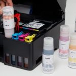Print Technology: 2 FINE Print Heads (Left : BK/R/Gy, Right : C/M/Y), Refillable ink tank printer