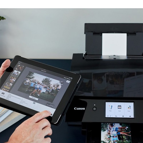 A4 MFP, Print, Copy and Scan. Specifications: 6 single inks, Wi-Fi connectivity - Canon PRINT app, AirPrint (iOS) and Mopria (Android), and 5Ghz support, Memory card compatibility - Print photos stored on SD cards, Printable nail stickers - create nail designs with the Nail Creator app and print using the multipurpose tray, rear feed for diverse media and multipurpose tray for nail stickers and disc printing, Automatic function -auto tilt panel, auto expandable output, auto 2-sided printing and auto paper width detection, 10.8cm touchscreen, 10x15cm borderless photo in 17 seconds Uses PGI-480PGBK, CLI-481BK, CLI-481C, CLI-481M, CLI-481Y, CLI-481PB, XL cartridges