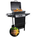 It has 2 burners and a side burner, it has piezoelectric ignition, the cooking area measures 48.5×37 cm and 86cm high, it also has a black front curtain.