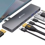 1*USB-A 3.2 Gen 2 10 Gbps 1*USB-A 3.0 5 Gbps 1*USB-A 2.0 480 Mbp; 1*USB-? 3.2 Gen 2 10 Gbps Ethernet 1000 Mbps 3,5mm audio output; 48K stereo SD/TF slots 2*4K UHD (60Hz) VGA resolution up to 1080P*60 H; DP (4Kx60Hz) Simultaneous work with 4 monitors Integrated braided cable 20cm