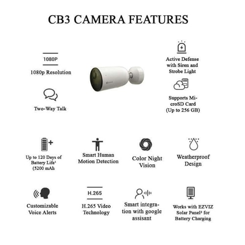 Cloud Storage: Supports EZVIZ CloudPlay storage (subscription required)