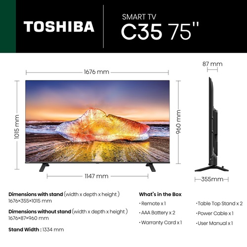 TOSHIBA SMART LED TV – 4K UHD 75 INCH (75C350MN)