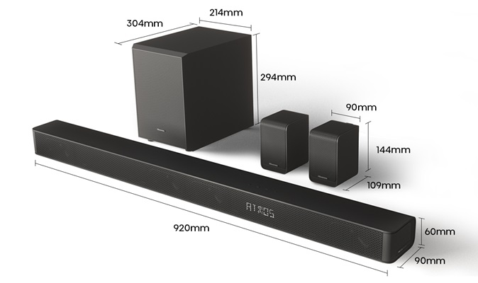 Sound Bar Dimensions (W x H x D): 92 x 6 x 8.89 cm