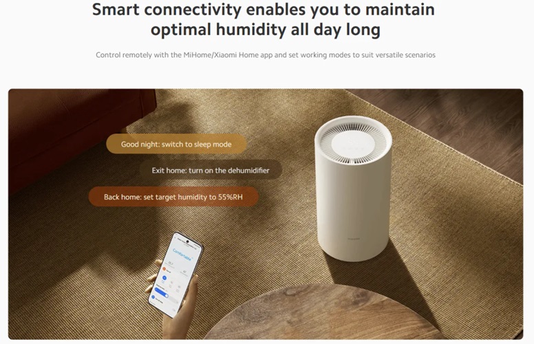2. Smart App Control ? Manage remotely via the Mi Home App, set schedules, and monitor humidity in real time.